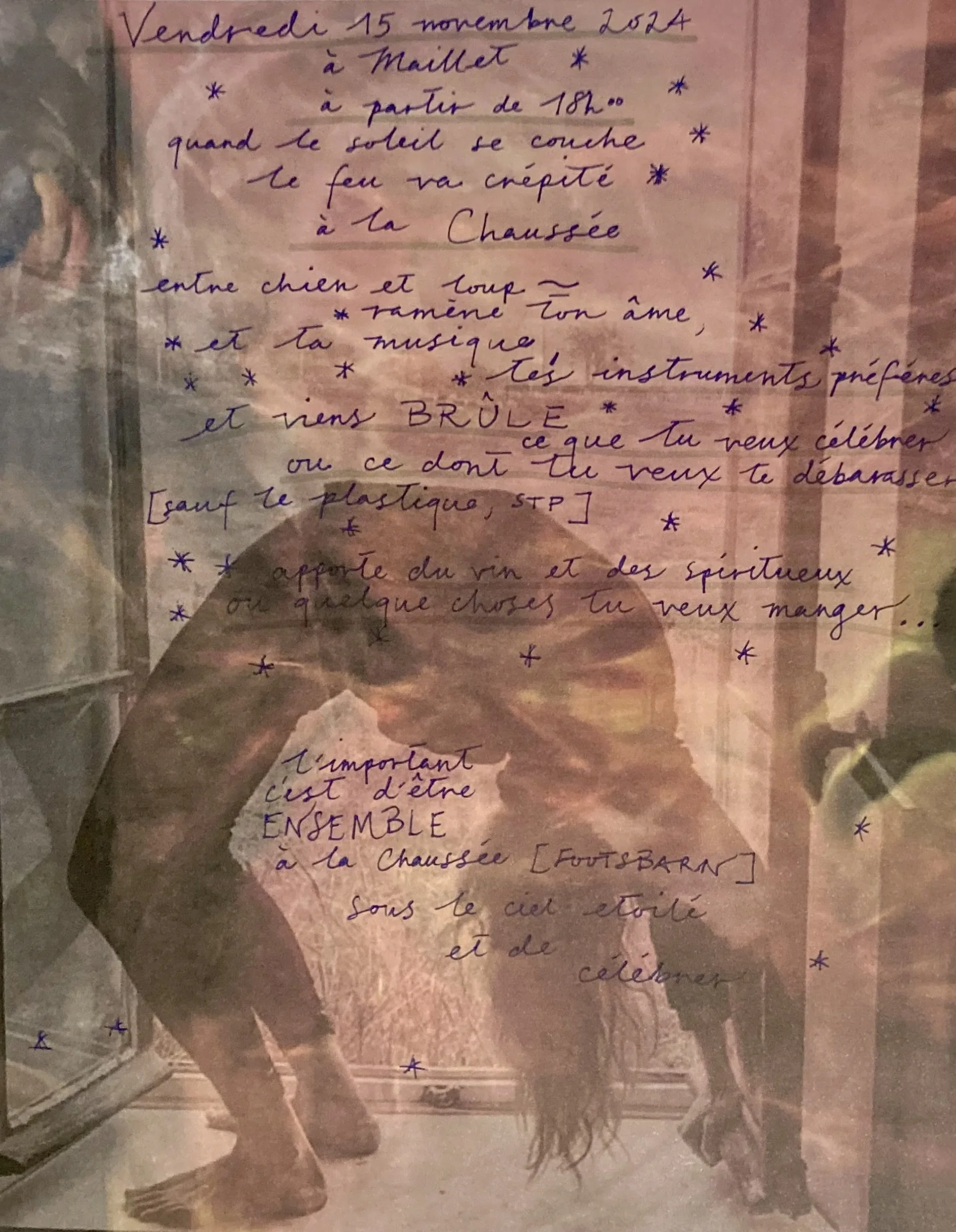 At the end of the exhibition , I held a Finissage : a Feu aux Folies - an event with an outdoor bonfire burning on a full moon- I asked people to bring instruments and something they wanted to burn - and some spirits too …