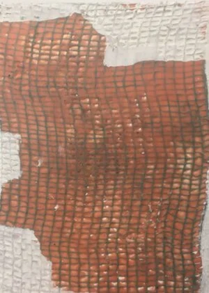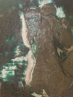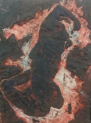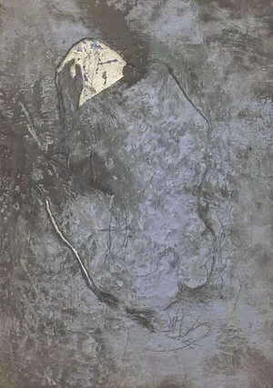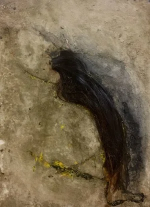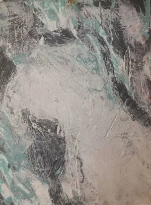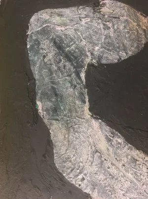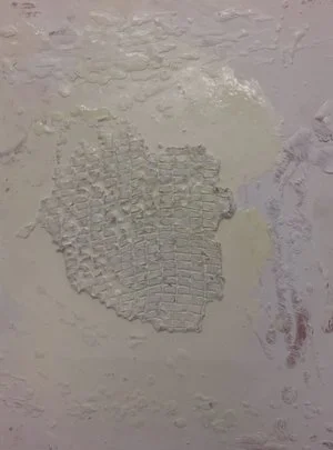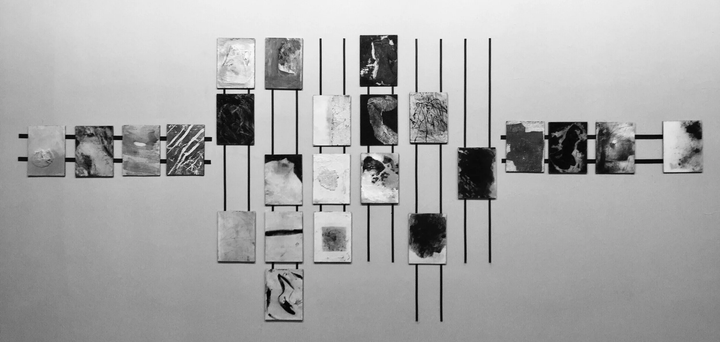 Made of 26 panels , this piece is an interactive and interchangeable embryonic love letter ; each individual panel represents an abstracted letter in the alphabet . Each panel was created using encaustic , cement , found-material , pigment and oil and mounted on magnetic metal composite with coinciding magnets on the wall . White gloves are set-aside for participants to interact with the letters and a Polaroid “photo-booth” is set up in front of the piece as well so that these individuals can document their personal anonymous love letter . Together , these Polaroid images turn into a 26 page art book of one love story .