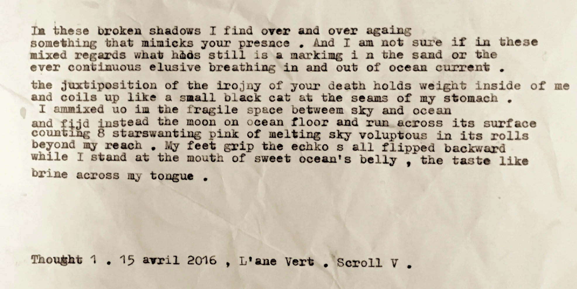 THEME : The dream of my father, greek story, Prometheus Unbound, typed Tafedna sunset every night on typewriter as meditation