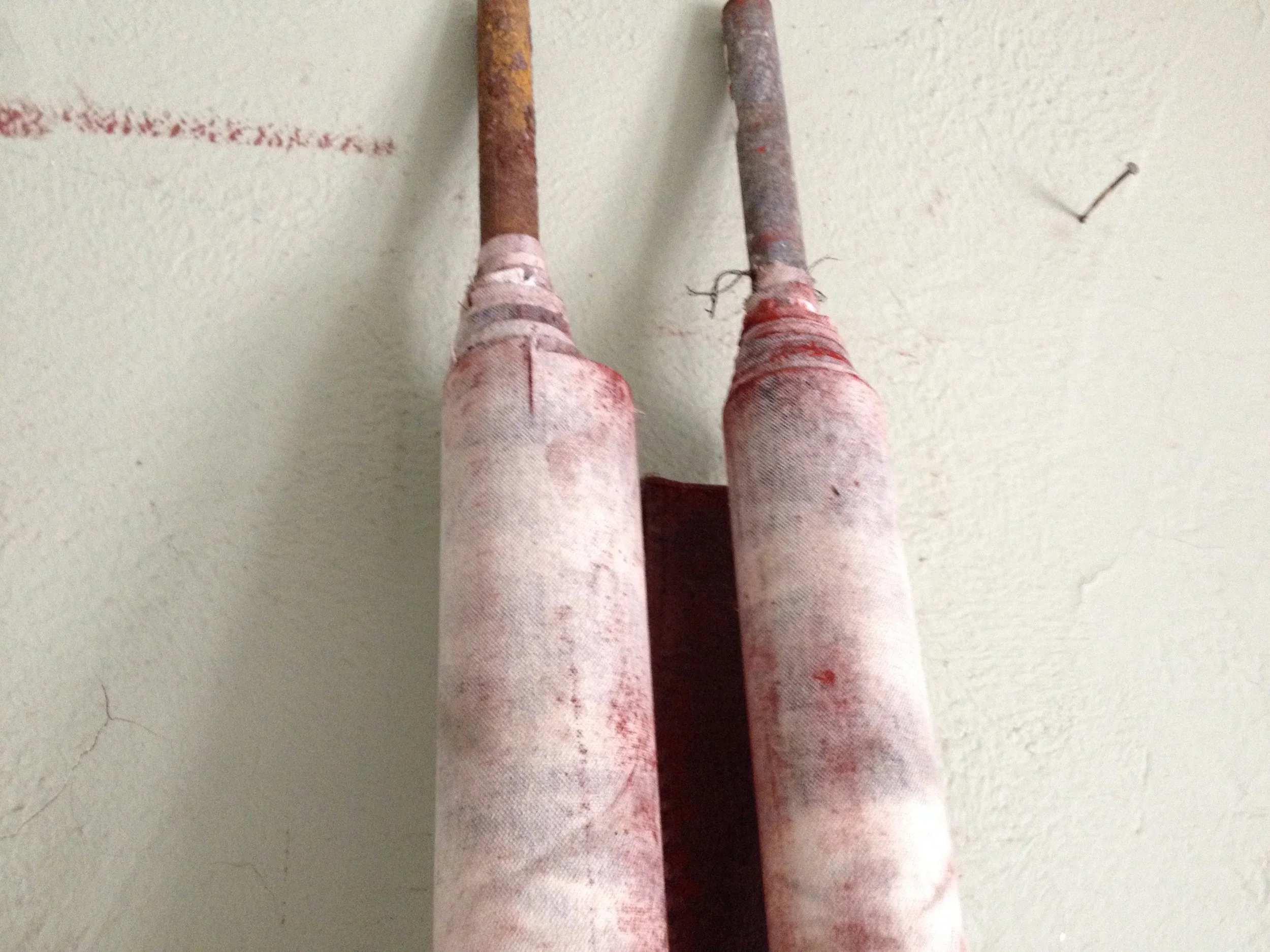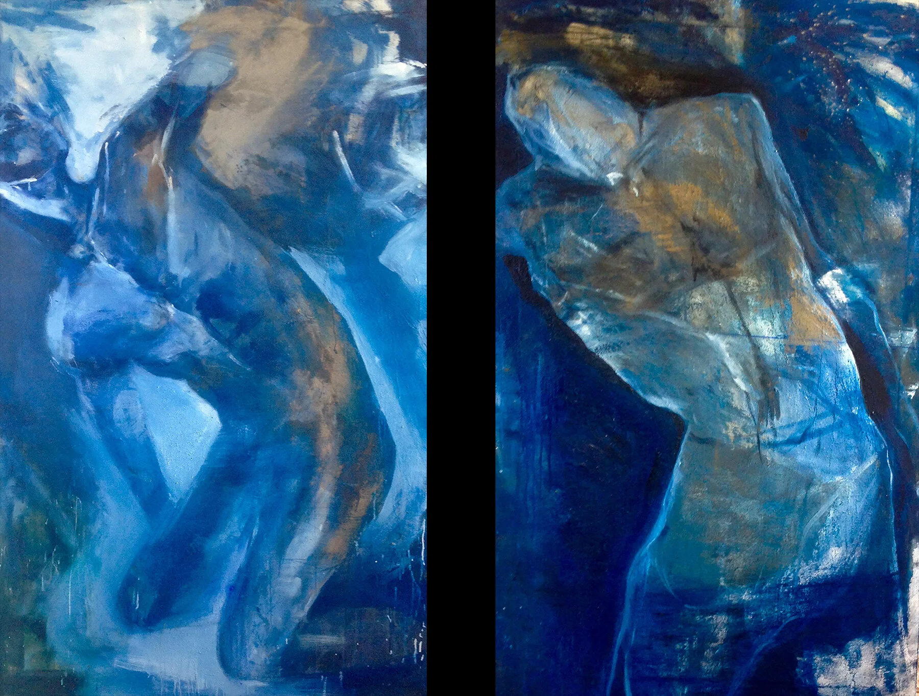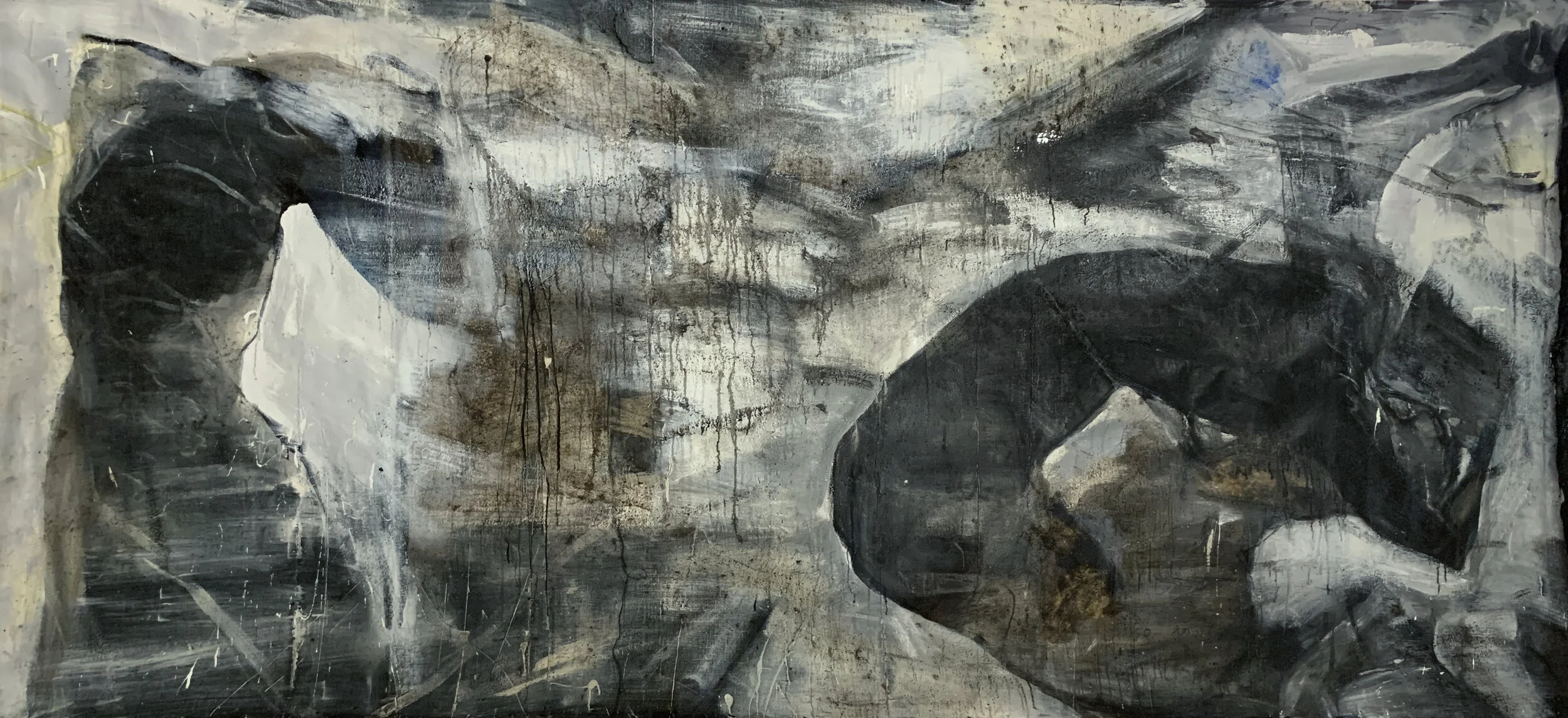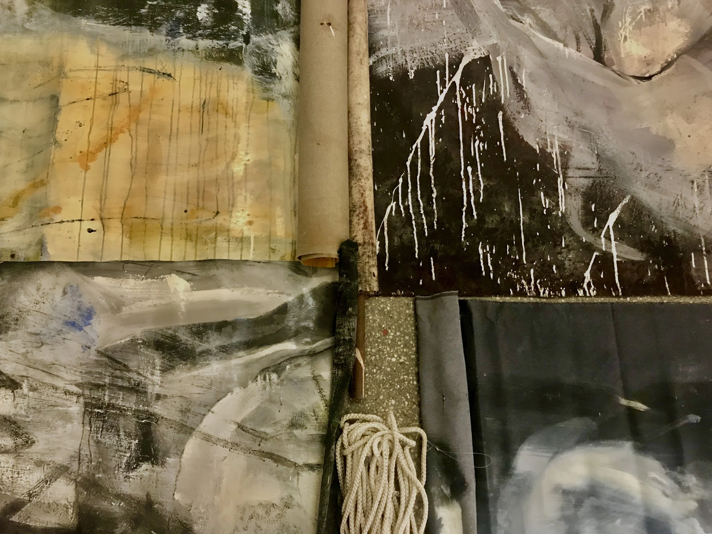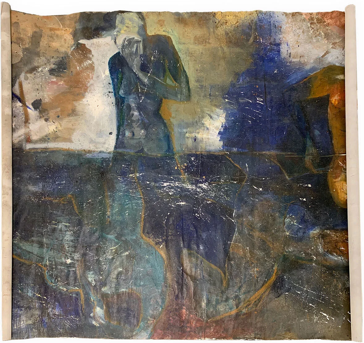 The Scroll Series began in 2014 and is made up of seven large paintings ( 2 m x 3 m ) all completed in different environments using found-pigments sourced from that particular place and then turned into tempera . Each piece is the projection of accumulated or gathered memories from a particular Valise [1] experience and turns into a chapter in the abstracted and then archetypal story [2] I am weaving . By turning fragmented souvenirs of foreign places into an internal memory still life , each piece can bear witness to certain common themes of the human experience .